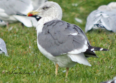 It was the transitional period that really left me baffled. This Yellow-legged Gull was photographed in late November. It still has some streaking around the eyes and front head. Yet, it seems in this picture that the back of the head is already turning white. It is during this time that distinguishing the Yellow-legged Gull from the Lesser Black-backed Gull is so difficult. I have added a picture of a Lesser Black-backed Gull below for comparison.